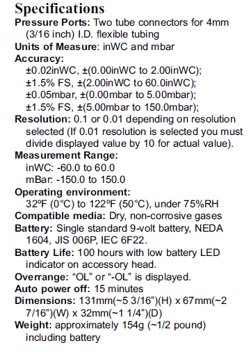 - Suitable for Static Air Pressure, LPG & Natural Gas measurements